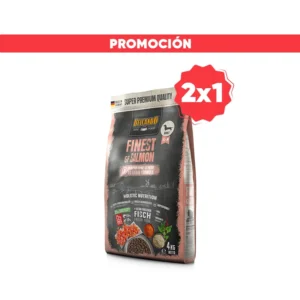 BELCANDO Finest GF Salmón es una receta especial, ya que al no tener granos y emplear únicamente fuentes de proteína marina, se convierte en una solución óptima para casos de intolerancia o alergias alimentarias. Está elaborado con amaranto, carne extra fresca de salmón y krill antártico, que otorga grandes cantidades de ácidos grasos Omega-3, ideales para mantener una piel y pelaje saludables.