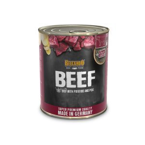 Ingredientes: carne, corazón, pulmón, panza, hígado, rims e ubres de ternera (63 %); caldo de ternera (26,5 %); patatas (4 %); guisantes (4 %); semillas de chía (1 %); cáscaras de huevo, secas (0,5 %); minerales (0,5 %); aceite de cardo (0,5 %) proteínas 11 %; contenido de grasa 6,0 %; cenizas brutas 0,4 %; fibras brutas 2,0 %; humedad 78 %