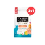 Salmón deshidratado, tapioca, grasa de ave (fuente de ácidos grasos Ω – 6), guisantes, levadura y extracto de levadura – Saccharomyces cerevisiae (fuente de mananooligosacáridos – MOS y β – glucanos), proteína hidrolizada de salmón, aceite de salmón (fuente de ácidos grasos Ω – 3 – EPA y DHA), vaina de algarroba, proteína de patata, boniato, pulpa de remolacha, Inulina (fibra soluble de achicoria, fuente fosfooligosacáridos – FOS), celulosa natural (fuente de fibra insoluble), minerales, fibra dietética soluble extraída de Plantago ovata, aceites esenciales (orégano, canela, clavo, tomillo, romero, hierbabuena, té verde), hidrolizado de crustáceos (fuente de glucosamina), hidrolizado de cartílago (fuente de condroitina), yuca, concentrado de zumo de melón liofilizado (rico en superóxido dismutasa – SOD).