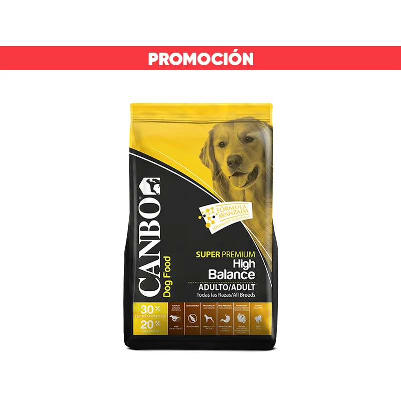 Contiene altos niveles de proteínas y grasas en comparación a las dietas regulares de mantenimiento. Canbo High Balance es un producto diseñado para mascotas que requieren altos niveles enérgeticos como por ejemplo: mascotas de alto rendimiento físico, recuperación post operatoria o en procesos de gestación, entre otros.