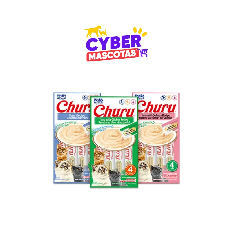 Puedes llevarte este combo que contiene: • 1 paquete de Churu Gatos Atún con Pollo x 4 tubitos • 1 paquete de Churu Gatos Atún con Salmón x 4 tubitos • 1 paquete de Churu Gatos Atún x 4 tubos