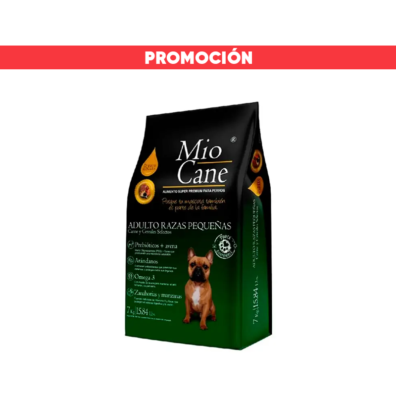 Miocane Super Premium Adulto 7 Kg está diseñada para perros que pesan menos de 10 kg. Contiene proteínas altamente digeribles y asimilables. Las fuentes de carbohidratos son fáciles de asimilar evitando problemas gastrointestinales. Su función es el mantenimiento del peso adecuado de la mascota. Se receta para perros de 1 a 8 años de edad.