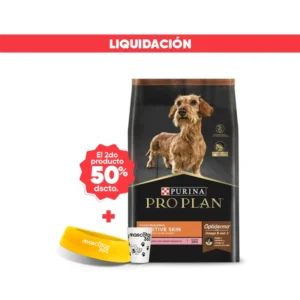 La comida para perros Pro Plan Sensitive Skin Adultos, está especialmente formulada para razas pequeñas. Ofrece una nutrición de avanzada con el objetivo de minimizar el riesgo de irritación en la piel asociada con la sensibilidad alimentaria. Además, esta dieta es de alta tolerancia, ya que ha sido desarrollada especialmente para satisfacer las necesidades específicas de perros con piel sensible.