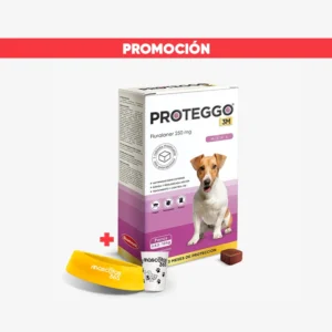 PROTEGGO 3M es un novedoso antiparasitario externo en forma de tableta blanda masticable altamente palatable formulado a base de fluralaner, una molécula innovadora que pertenece a la familia de las isoxazolinas de acción sistémica, actividad inmediata y larga duración. La forma “micronizada” de la tableta antipulgas para perros Proteggo 3M mejora la absorción y biodisponibilidad del producto. PROTEGGO 3M inicia su actividad a partir de la primera hora post tratamiento, eliminando a las pulgas en 8 horas y garrapatas en 12 horas, continuado su acción antiparasitaria por 3 meses.